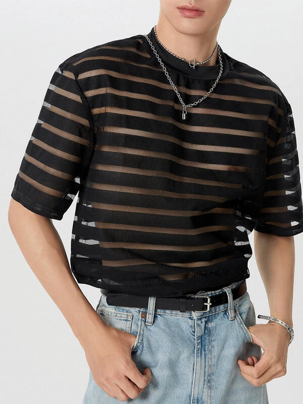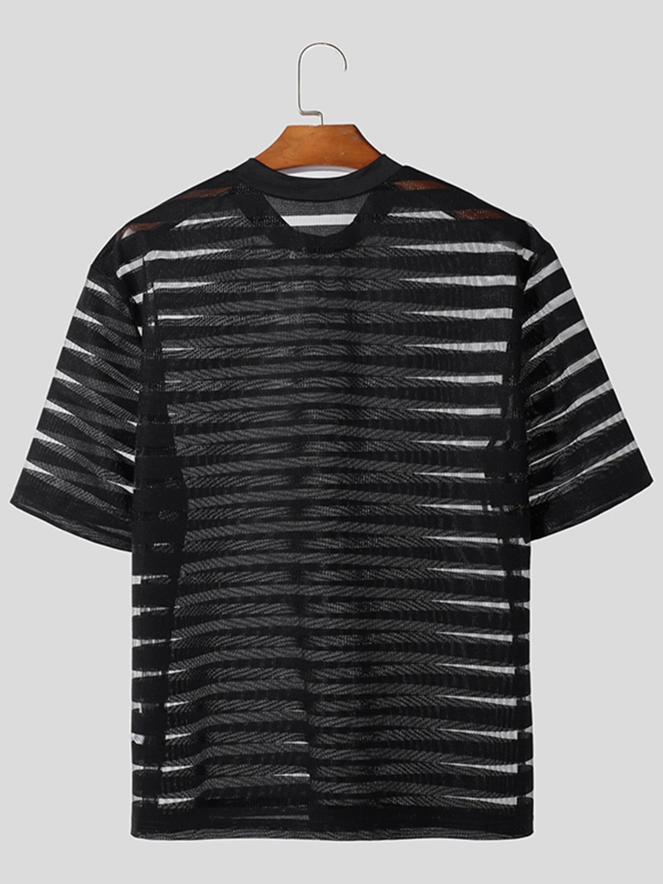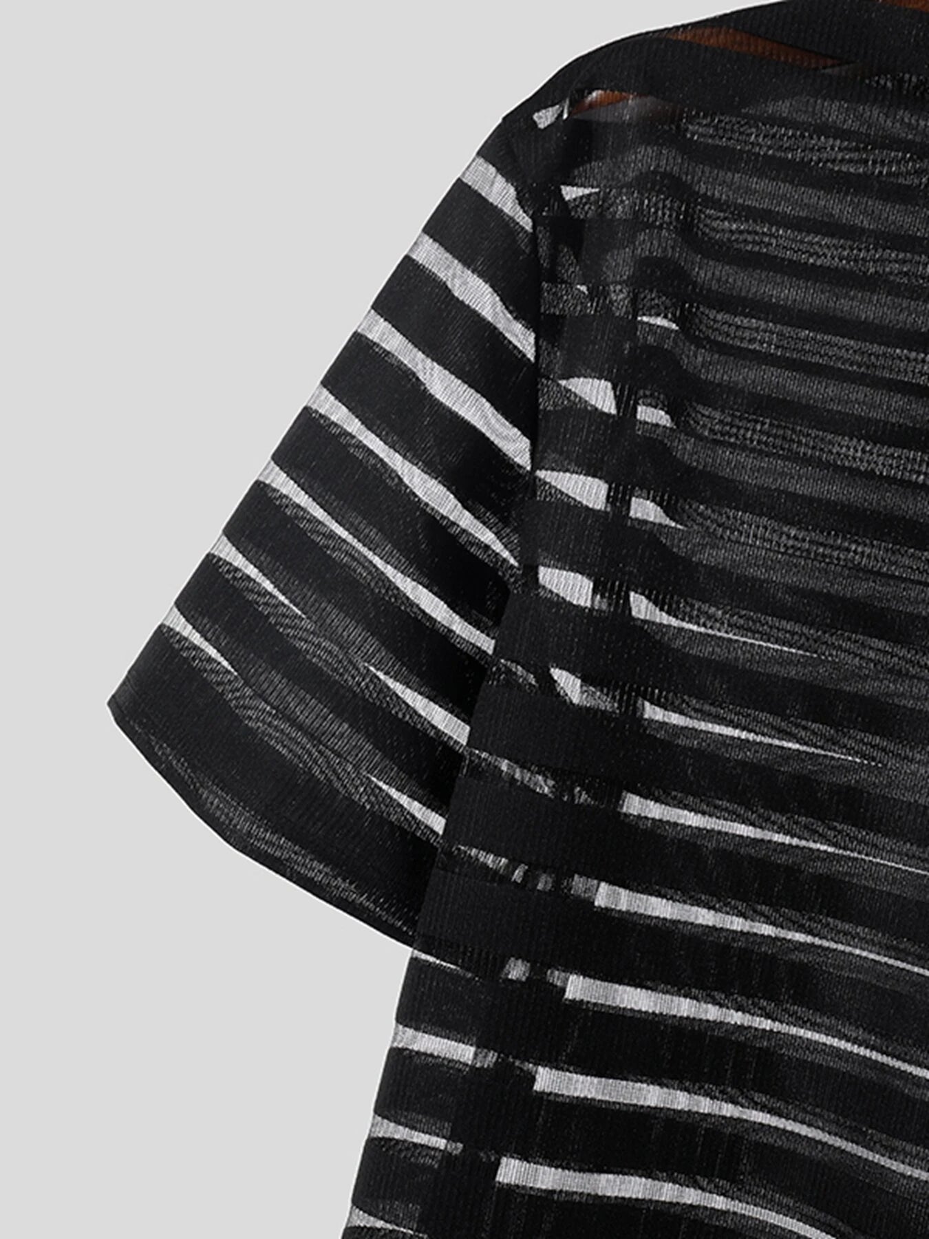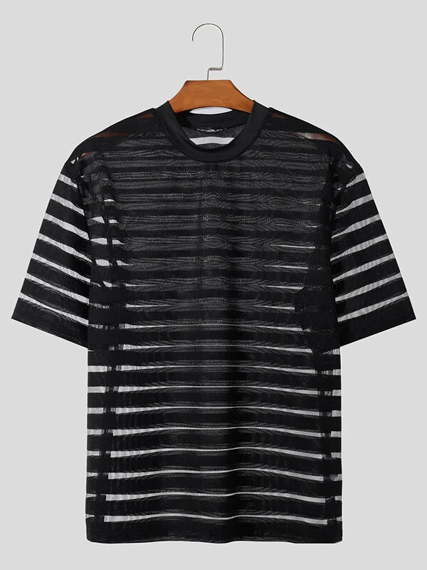 Chemise pour hommes à rayures INCERUN à manches courtes, haut transparent pour soirées en boîtes de nuit, tailles S-5XL