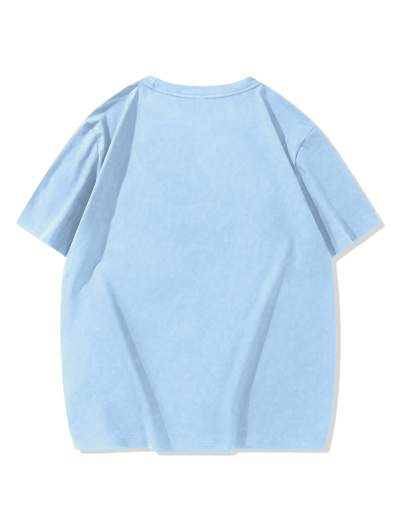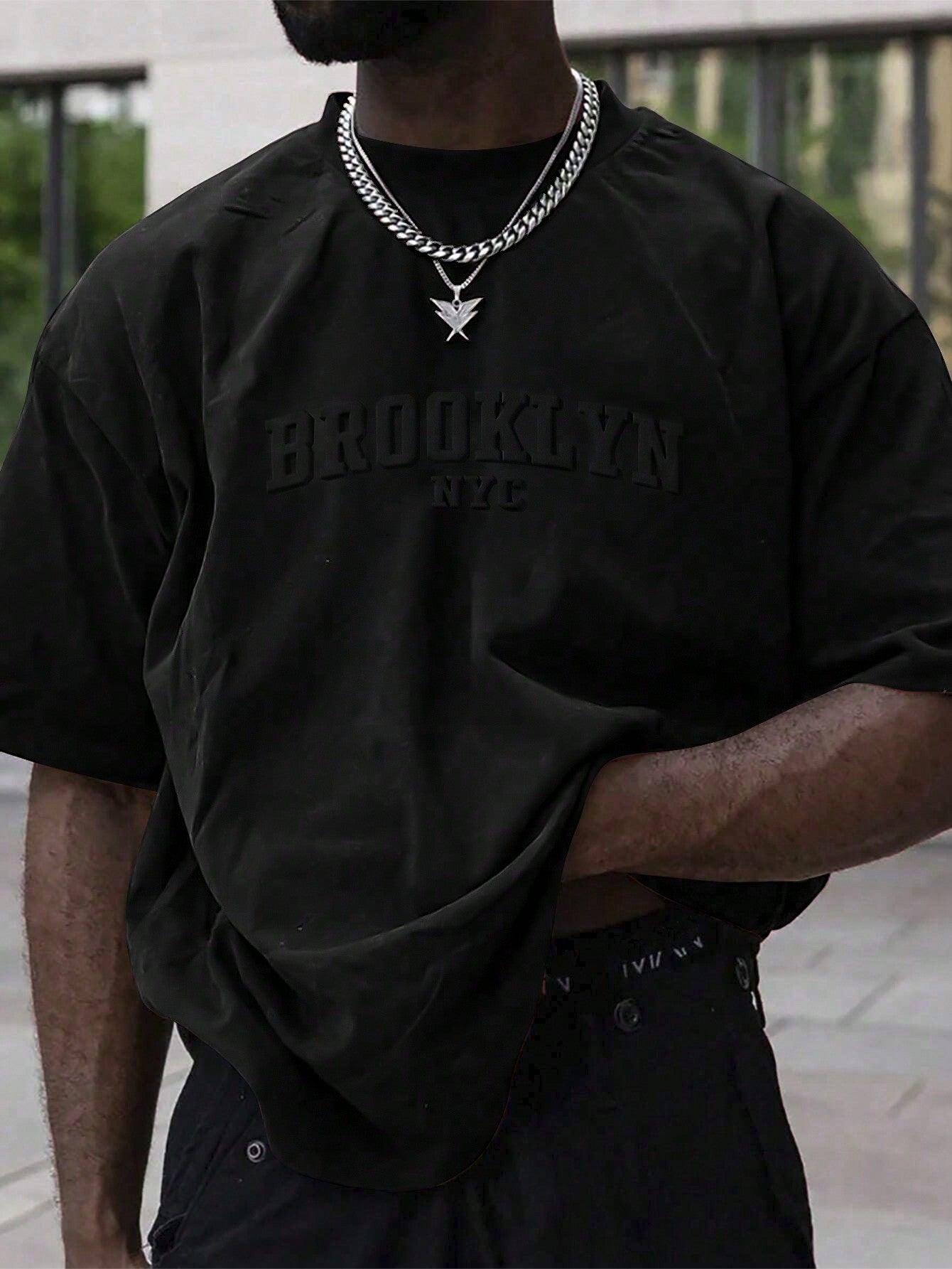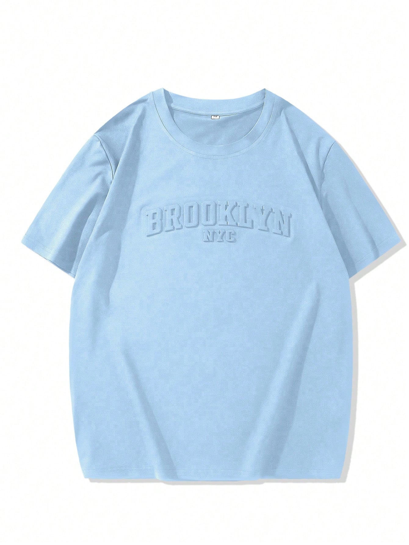 Manfinity Homme T-shirt casual à manches courtes pour hommes en été, col rond, avec impression en relief de lettres. Streetwear