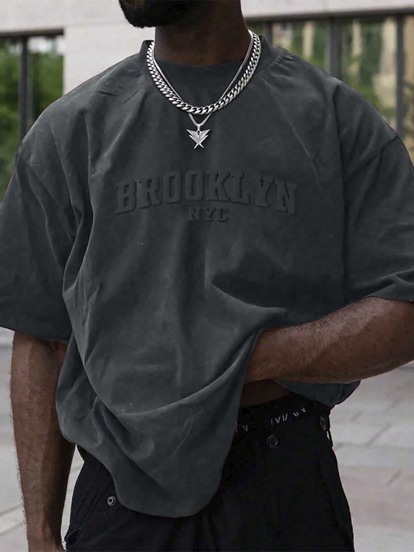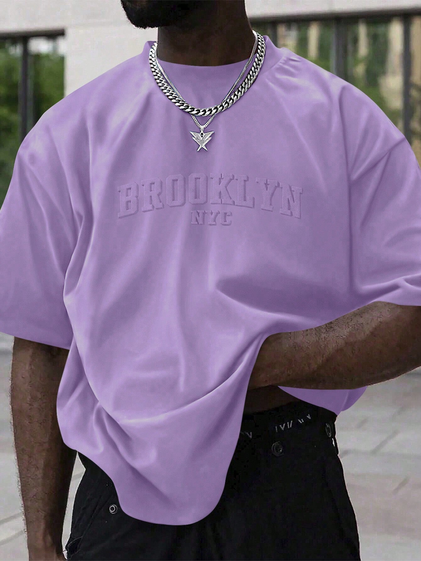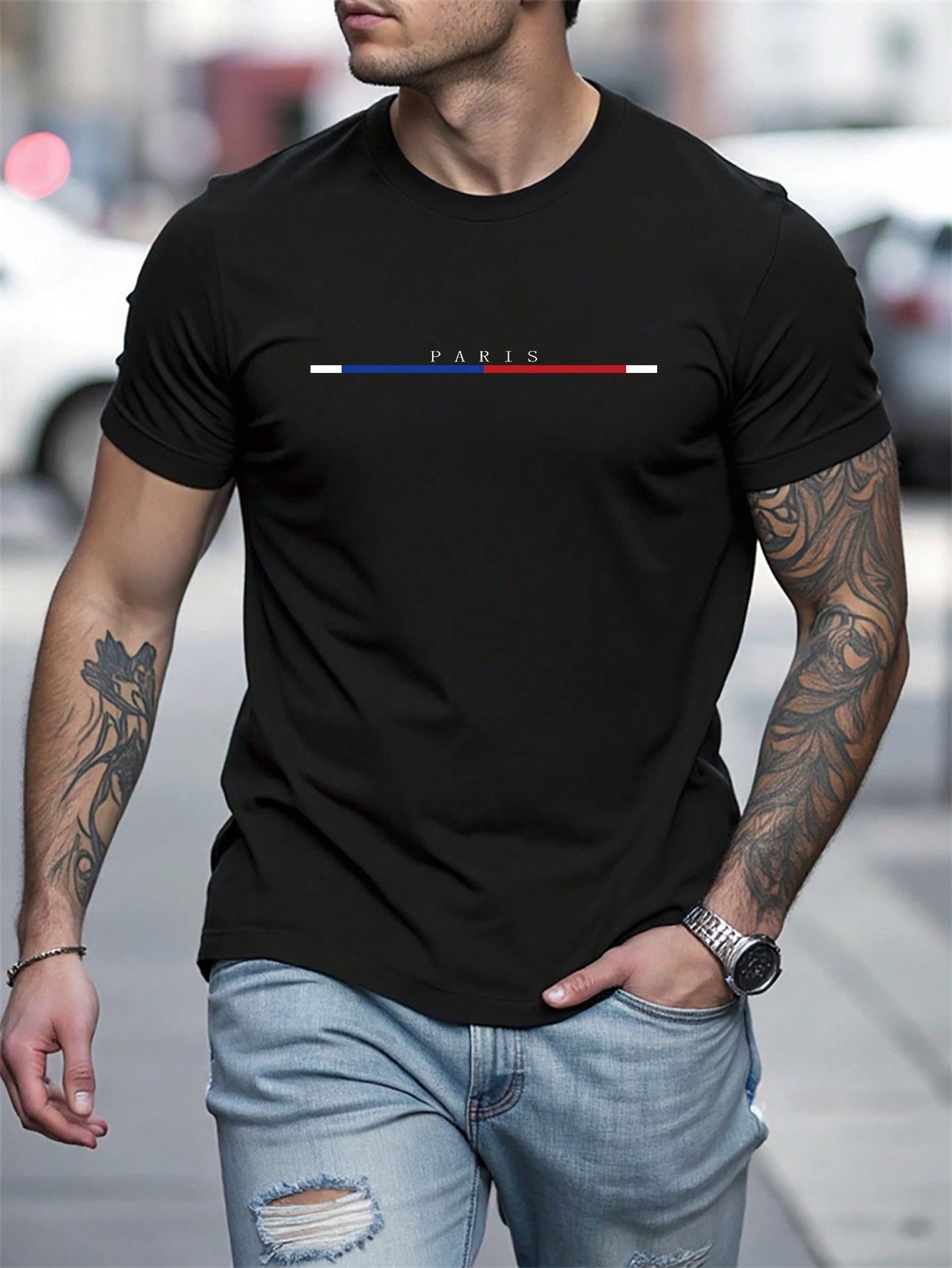 Manfinity Homme T-shirt casual à manches courtes pour hommes en été, col rond, avec impression en relief de lettres. Streetwear