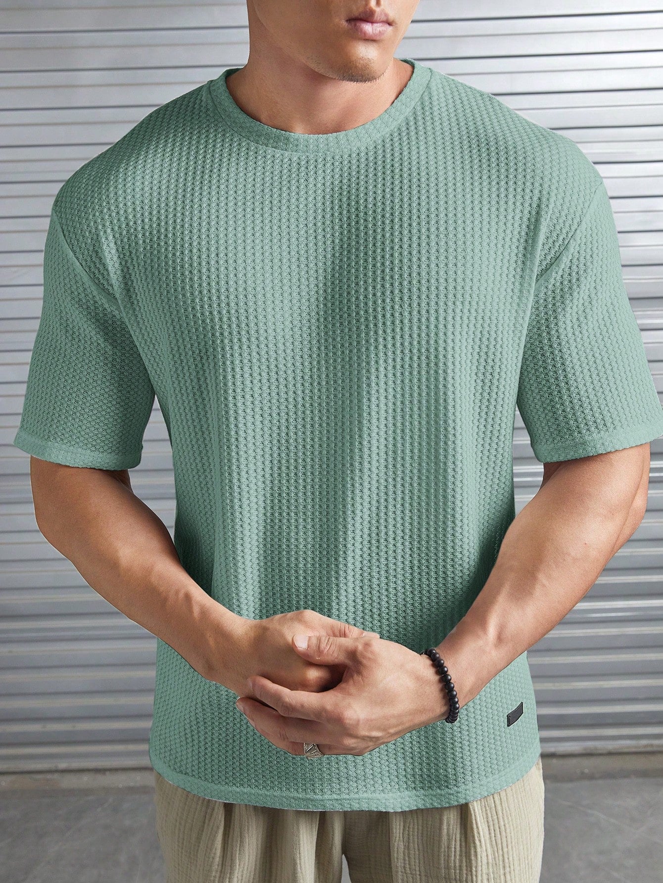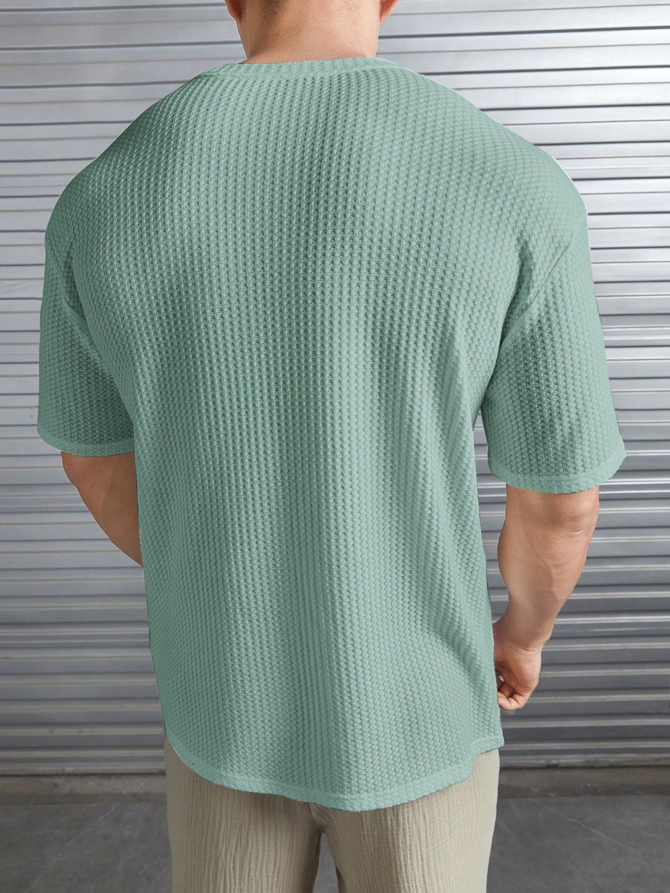 Manfinity ModaGents Tee-shirt en tricot de nid d'abeille avec lettre appliquée unie, décontracté pour homme