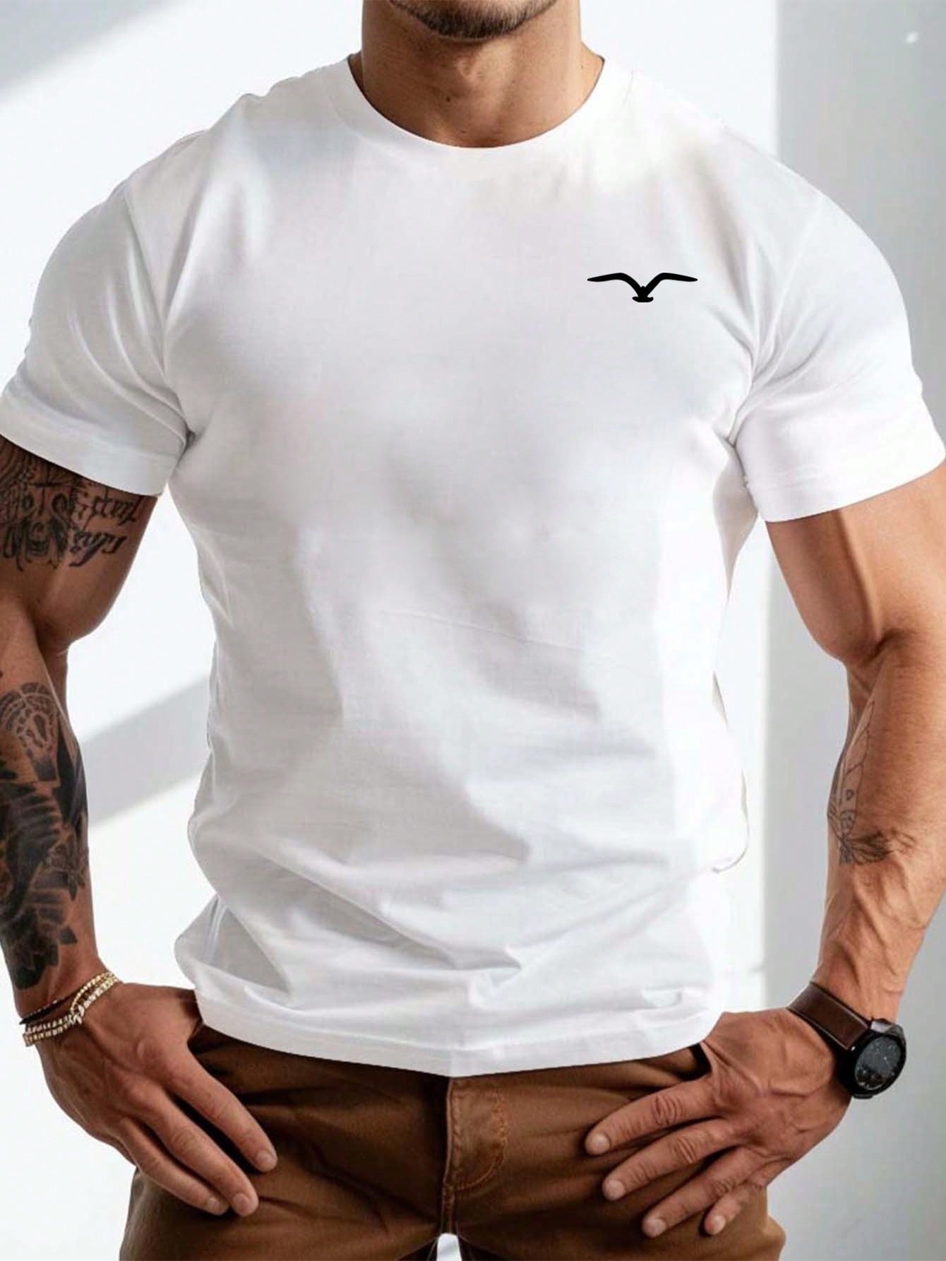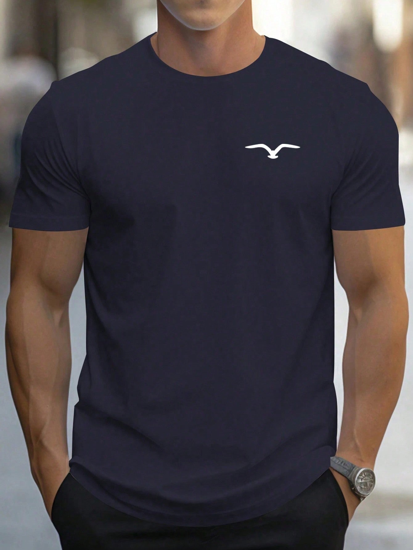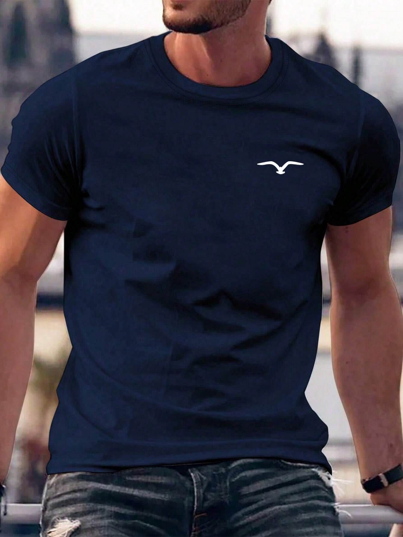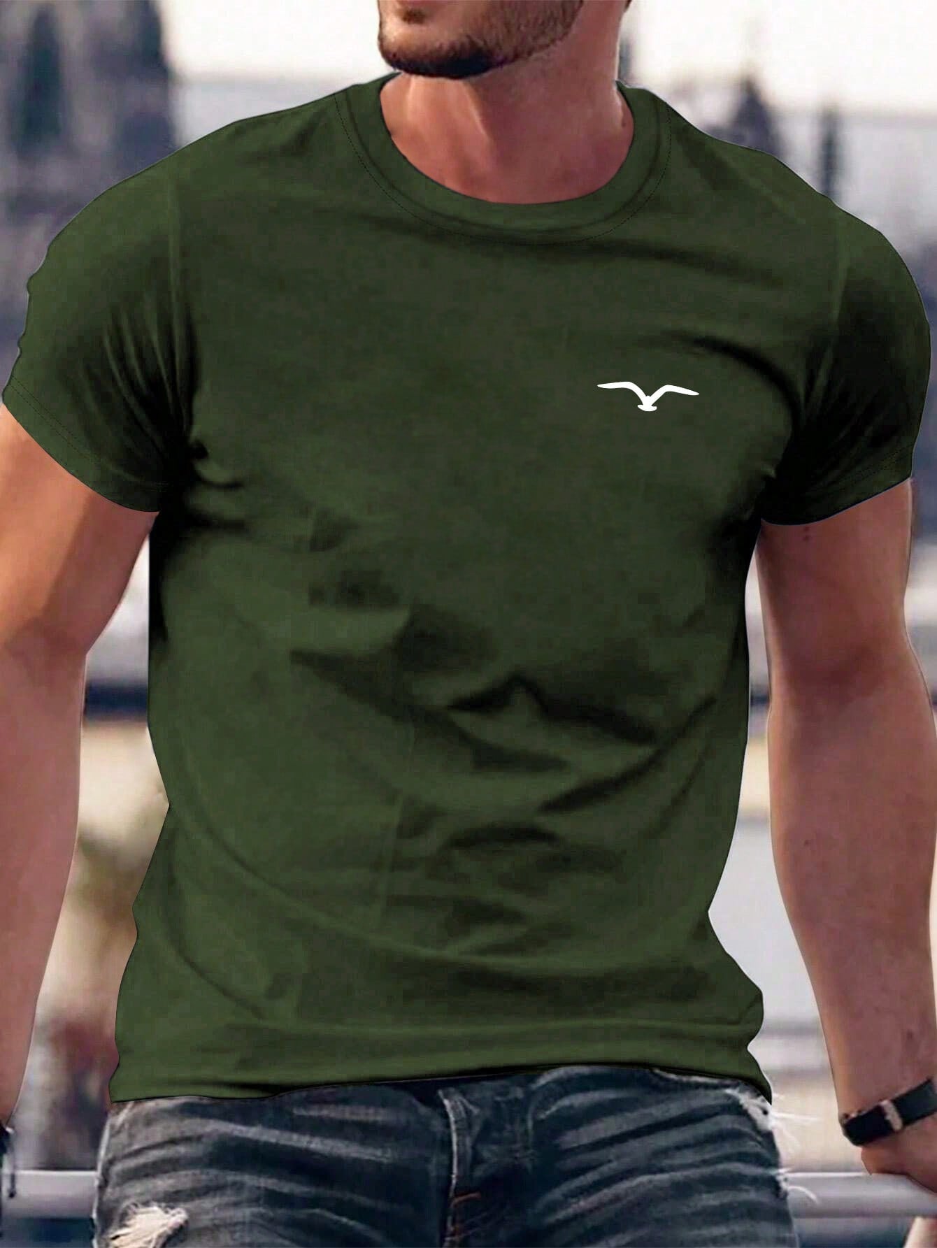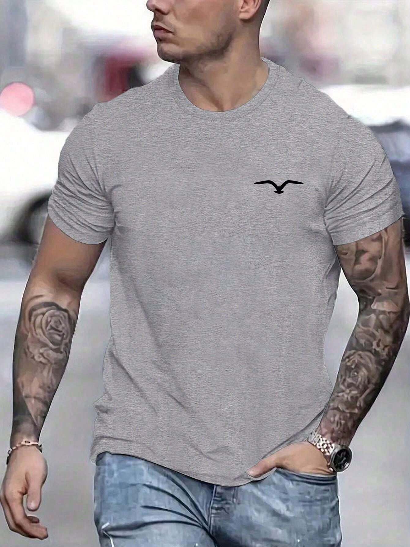T-shirt d'été casual pour hommes à col rond avec imprimé oiseau